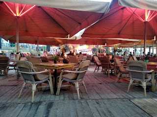 on the café canopies, this usually indicates that the cafe is Portuguese owned,